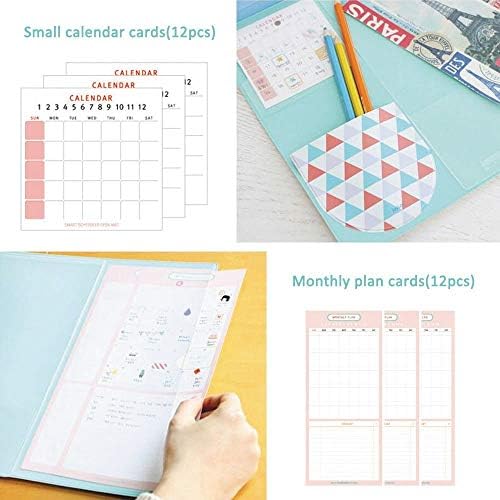 12pcs calendar cards 12pcs monthly plan cards1 smartphone stick sponge stand1 convenient transparent pvc scale ruler 3 transparent pockets to put cards, monthly schedulers, pencils, stickers, erase, memo, pens