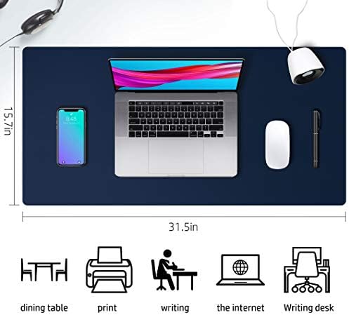 Leather Desk Pad Protector,Mouse Pad,Office Desk Mat,Non-Slip PU Leather Desk Blotter,Laptop Desk Pad,Waterproof Desk Writing Pad for Office and Home(Dark Blue,31.5″ x 15.7″)