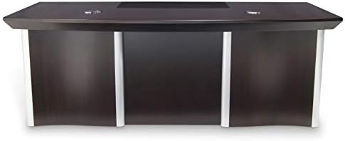 Price: (as of – Details) Productivity is made simple with our stylish Lincoln executive desk. This sleek and modern set is exquisitely crafted with a smooth dark stained American walnut wood veneer finish. Features include a combination of black leather desktop writing pad, silver painted elements, chrome cable cutouts, and a pencil drawer. The mobile