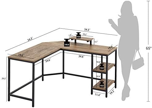 LINSY HOME Computer Desk 54 inch, L Shaped Desk with Shelves Large Monitor Stand, Corner Desk for Office Home, Easy to Assemble, Wood.