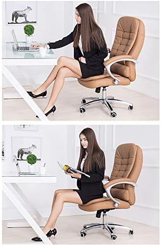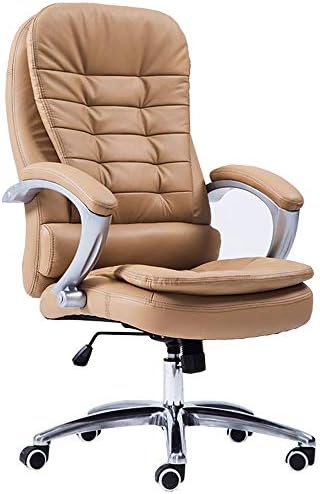 LJFYXZ Home Office Desk Chair Home Computer Chair Double Layer Design High Back Large Seat PU Reclining Swivel Chair Fixed armrest Bearing Weight 150kg (Color : Khaki)