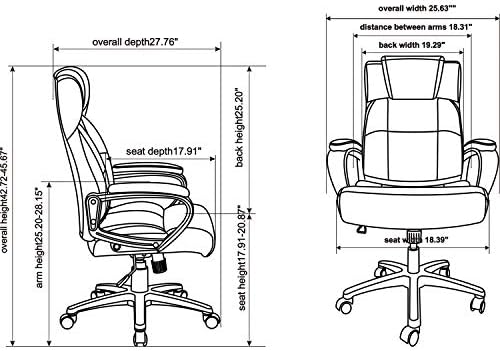 Price: (as of – Details) Executive chair with a high-back features a Bonded leather exterior to provide timeless style that fits in nearly any room. Pneumatic, seat-height adjustment allows a variety of users to sit comfortably at their desk. 360-Degree swivel allows you to effortlessly rotate the chair for added convenience. Executive chair features center-tilt