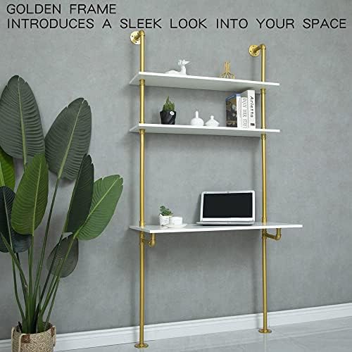 MAIKAILUN White and Gold Desk, 36″ Ladder Desk, Wall Mount Computer Writing Table Pipe Shelf Shelving Mini Narrow Industrial Modern for Small Spaces(36x20x81)