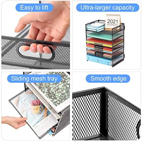 Marbrasse Paper Letter Tray Organizer – 6 Tier Mesh File Organizer with Handle, Paper Sorter Organizer for Letter/A4 Office File Folder Holder – Black