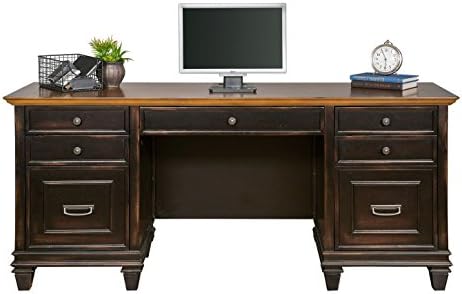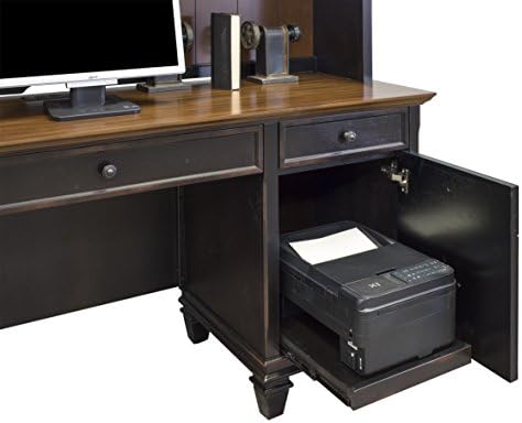 The Hartford collection combines bold lines with a weathered, vintage finish and classic style elements. The warm, two toned rubbed finish gives Hartford the relaxed feel of old world wood, while wire mesh details add a formal element. The Hartford collection will be right at home in either a classic formal setting or a relaxed, eclectic home. The credenza includes drop front keyboard pencil drawer, three utility drawers, one locking letter/legal file drawer, faux drawer door with printer pullout, and a power center with two AC power outlets and three USB 2.0 connections. Arrives fully assembled. Backed with a 5 year warranty.