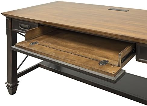 The Hartford collection combines bold lines with a weathered, vintage finish and classic style elements. The warm, hand applied two toned rubbed black finish gives Hartford the relaxed feel of old world wood, while wire mesh details add a formal element. The Hartford collection will be right at home in either a classic formal setting or a relaxed, eclectic home. The writing desk includes a center drawer with a drop down front to hold a keyboard and wire management to control cables. It is fully Finished on all sides for placement anywhere in a room. Leg assembly required. Backed with a 5 year warranty.