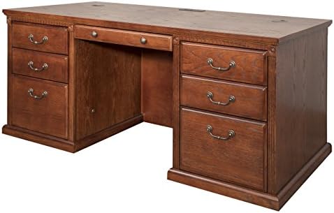 Martin Furniture Huntington Oxford 68″ Double Pedestal Executive Computer Desk, Burnish Finish, Fully Assembled