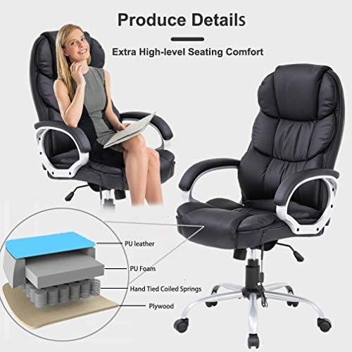 ✜【Chair With Arms】This ergonomic office chair has padded arms for upper body support and an integrated headrest for additional support, ergonomic design contoured to your body, This sleek computer chair can improve posture and maximize comfort for your neck, back, spine and lumbar. The tilt mechanism also gives the user maximum productivity through superior ergonomics. Big Tall Heavy Duty Executive Chair Task Swivel Computer Chair Essentials Big and Tall Leather Executive Chair High Back Chair