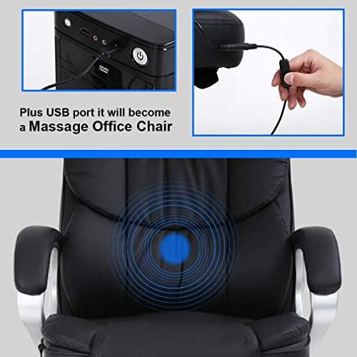 🎁 We present this high back massage office chair with a unique appearance and feel, unlike most office chair on the market, it has a vibrator with remote control, slight vibration can reduce the fatigue. And If you don’t want to use the massage function, you can roll up the data cable and put it in a small bag. This executive chair has a higher backrest to support the entirety of your spinal column. And desk chair offers a stable five-point base with a gas spring, allowing the user to adjust for varying heights to better meet the needs of your office or computer desk. Seat height: 19.7”-23”; Seat wide: W21”*D21”.