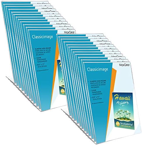 MaxGear Acrylic Sign Holder 8.5 X 11 inches Slant Back Sign Holder Clear Sign Display Holder Plastic Display Stands Table Sign Display Holder for Office, Home, Store, Restaurant – Vertical, 24 Pack
