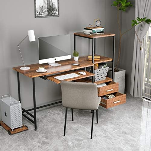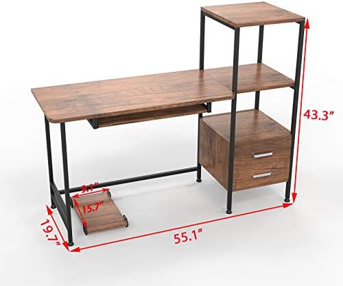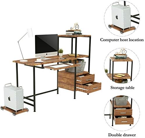 Price: (as of – Details) 1.[SPACIOUS WORK AREA]: This computer desk offers wider space to fit your laptop,With keyboard push and pull function2.[STORAGE SHELVES ]: 2 tier shelves to storage or decorate your desk, providing a plenty of room for under-desk storage and organization.3.[DURABLE & STABLE CONSTRUSTION]: This bookshelf waterproof and anti-scratch. Strong metal frame