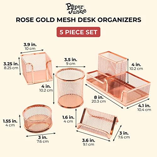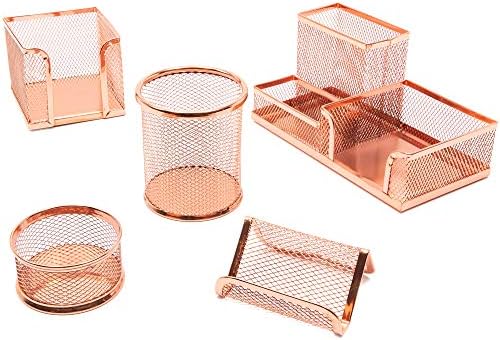 Mesh Wire Desk Organizer Set (Rose Gold, 5 Pieces)