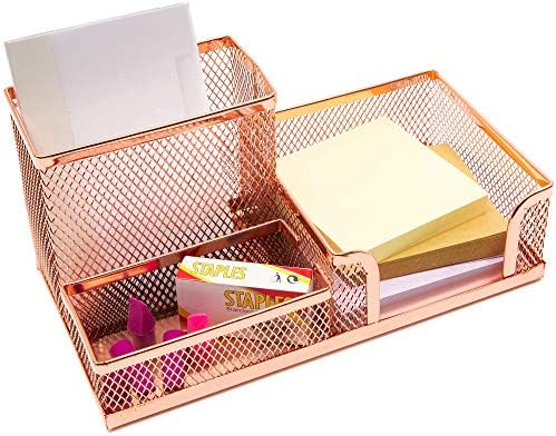 Price: (as of – Details) Keep your stationery organized and your desk clean with this desk supplies organizer. The set comes with 5 different holders to hold all your products for you. Made from a wired mesh, these table organizers are durable and will last for a long time. The rose gold metal mesh gives
