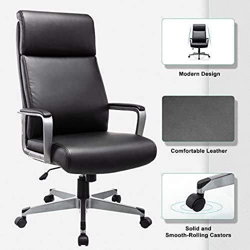Modern Style High Back Office Chair – Soft Leather Ergonomic Executive Boss Chair Swivel Computer Chair, Adjustable Height Thick Padded Stable Durable Base Conference Desk Chair for Home Office Work