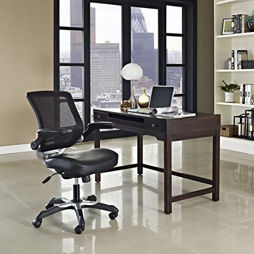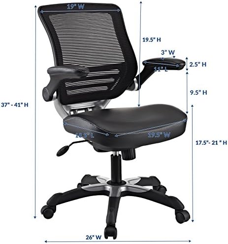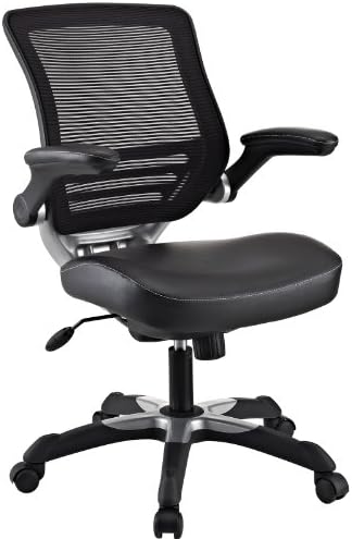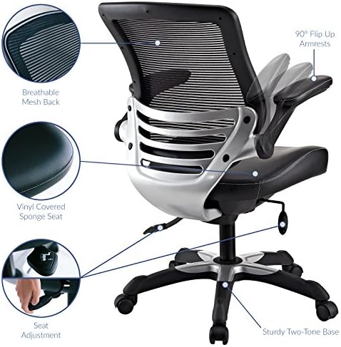 Modway Edge Mesh Back and White Vinyl Seat Office Chair With Flip-Up Arms – Computer Desks in Black