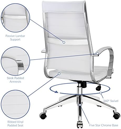 Modway Jive Ribbed High Back Tall Executive Swivel Office Chair With Arms In White
