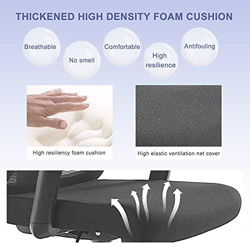 Molblly Ergonomic Office Chair Mesh Home Office Computer Chair High-Back Swivel Executive Chair Height Adjustable & Soft Foam Seat Cushion with Thick Seat,Adjustable Lifting Headrest With Hanger,Black