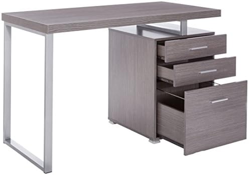 Monarch Specialties Left or Right Facing 47-Inch Modern Home Office Computer Study Writing Desk with Filing Drawer, 48″L, Grey & Silver