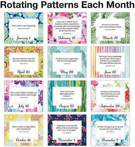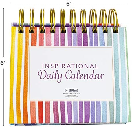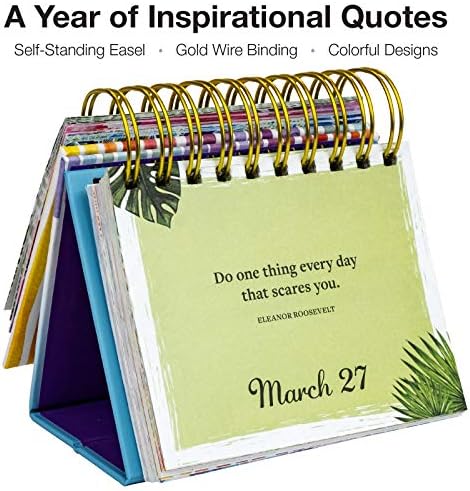 DAILY INSPIRATION: This perpetual calendar includes a year of inspirational and motivational quotes to a happy and peaceful lifeDURABLE: Constructed with gold wire binding that is sturdy enough for long term use.EASY TO USE: This inspirational calendar has a built-in Easel stand, perfect for work desk and tableLONG-TERM USE: This calendar is in Perpetual format, so you can use it year after year.