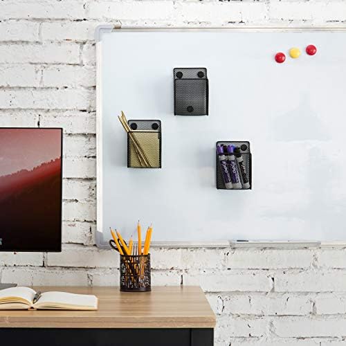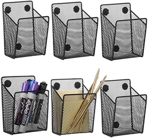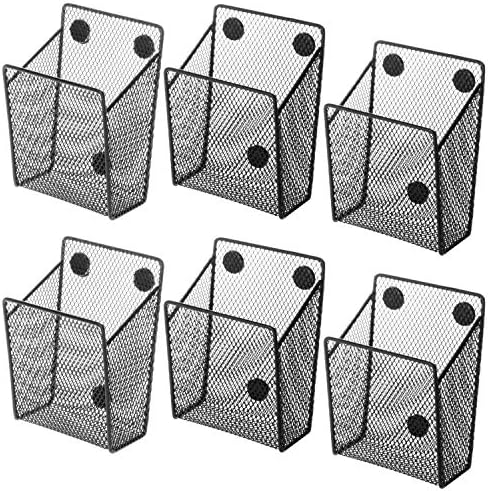 MyGift Black Wire Mesh Magnetic Pen & Dry Erase Marker Holder Office Supply Storage Baskets, Locker Organizers, Set of 6