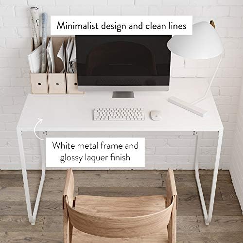 Price: (as of – Details) Penny is a simple, white, metal desk with a minimalist design featuring a glossy white, table-top finish and elegant rounded metal legs with six adjustable floor foot protectors. This desk table has the perfect area to display decor or can also be used as a workstation for your favorite hobbies.