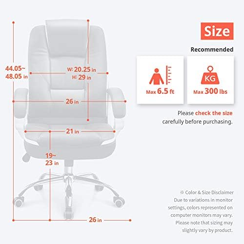 Price: (as of – Details) Product Description Height Adjustment Just for Your Height Tilt Work Hard, Rest Deeply 360 degrees Swivel In any way you like Material Leather Leather Fabric Option Black / Orange / White / Green Black / Ivory Black / Gray / Brown / Green / Red Weight Capacity 300 LB 300