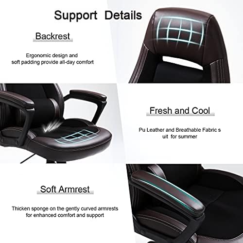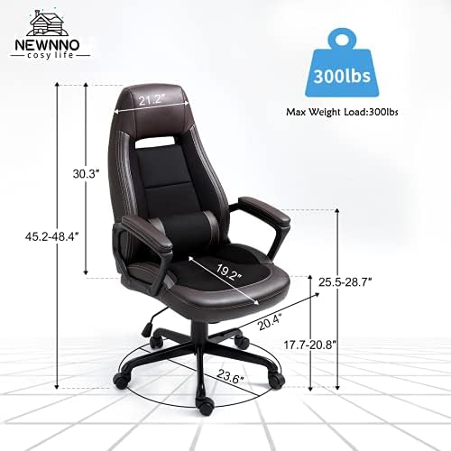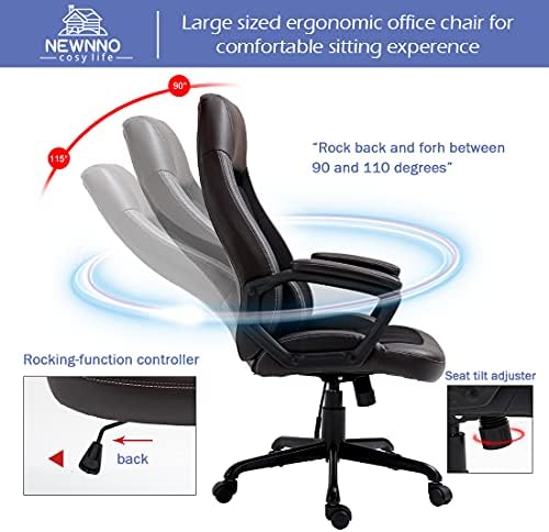 Newnno Office Chair Desk Chair Home Office Desk Chairs Executive and Managerial Chair High Back Comfortable Swivel Computer Chair with PU Leather Lumbar Support Wheels Padded Armrests, Brown