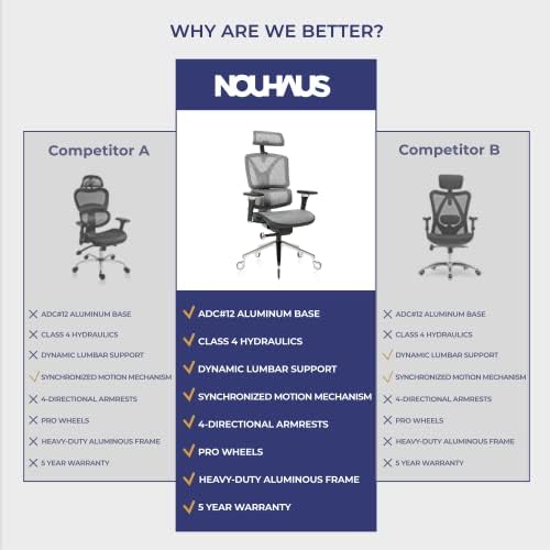 Price: (as of – Details) AN UPGRADE ON AN ALREADY GREAT CHAIR: Search “Ergo3D” on the internet, and you’ll find our chair in all the top 10 office chair lists on page one. So, because you loved this desk chair so much, we created a functional luxury upgrade with smooth, silent Nouhaus PRO Wheels, and