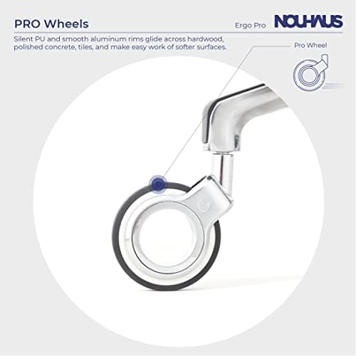 THE FUTURE OF WHEELS: Nouhaus PRO Wheels are like roller blade wheels, but instead with a very cool hollow center. Silent PU and smooth aluminum rims glide across hardwood, polished concrete, tiles, and make easy work of softer surfaces. This is a world first for office chair wheels ; Lucky you.