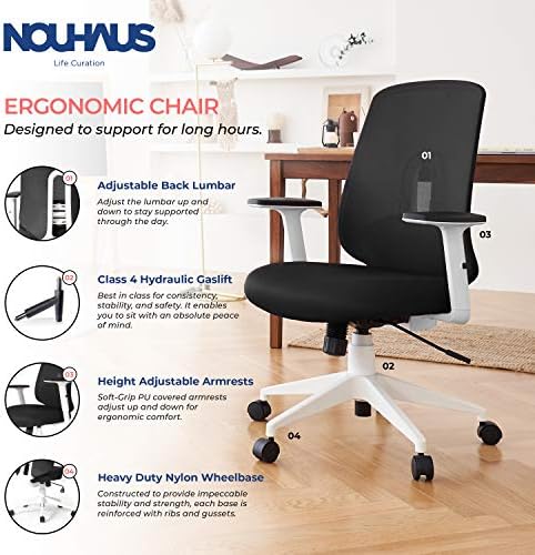 NOUHAUS Palette Ergonomic Office Chair Comfortable Swivel Computer Desk Chair, Lumbar Adjust Rolling Chair. (Black)