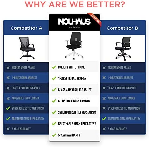 Price: (as of – Details) COLOR YOUR LIFE IN COMFORT: With ‘Just-For-Me’ Lumbar Adjust, 2:1 Synchro Tilt, Height Variable Armrests, a compact size and rich vibrant colors, The Palette by NOUHAUS can only be described as a swivel chair with Spatial Mindfulness. It’s comfort with looks, so you can sit how you want, but better.‘JUST-FOR-ME’