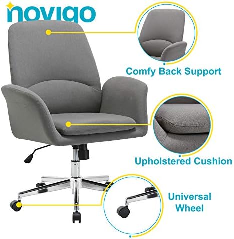 NOVIGO Upholstered Home Office Chair with Comfy Back Support for Conference Room Study Grey BIFMA Certified