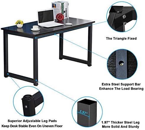 NSdirect 63″ X-Large Computer Desk, Has Wide Workstation Tabletop for Writing,Games and Home Work,Modern Home Office Desk&Dining Table Made of The Finish Wood Board and Sturdy Steel Legs (Black)