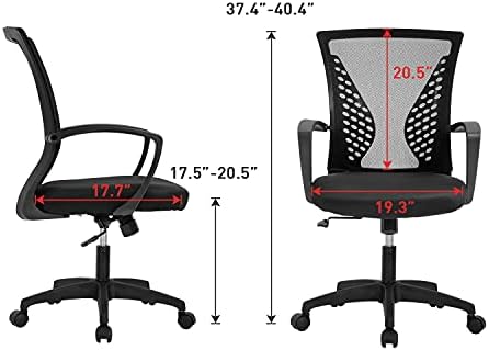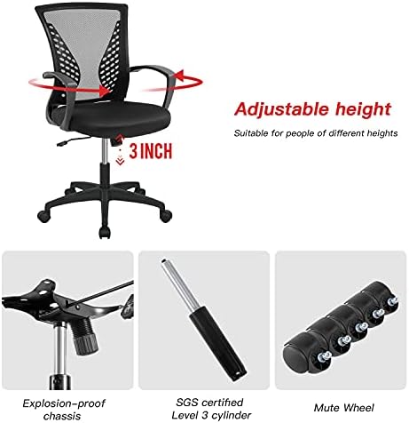 Office Chair Computer Chair Ergonomic Mid Back Swivel Chair Rolling Desk Chair with Armrest Height Adjustable Lumbar Support Mesh Chair,Black