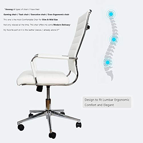 Office Chair Desk Computer Ribbed Modern – Adjustable Height Ergonomic Leather Tilt Arm Sleeves Lumbar Support High Back Executive Meeting Conference Chrome Wheel Caster 350lbs Big(White)