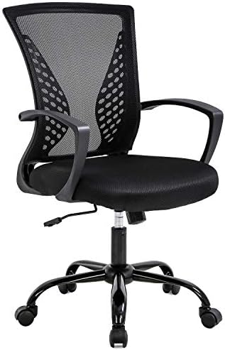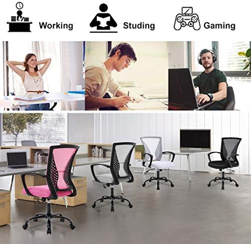 Office Chair Ergonomic Desk Chair Mesh Computer Chair with Lumbar Support Armrest Mid Back Rolling Swivel Adjustable Task Chair for Women Adults, Black
