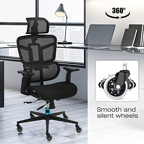 Office Chair – Ergonomic Desk Chair Mesh High Back Computer Chair, Adjustable 3D Lumbar Support Executive Office Chair with 4D Armrests, Tall Home Office Desk Chair, Rolling Swivel Task Chair, Black