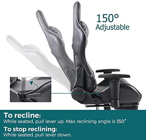 Price: (as of – Details) Product Description 【Recliner Gaming Chair】This gaming recliner can be used as a transforming piece of furniture that reclines from 90 to 150 degrees and suit for gaming, working, watching movies, and napping. While seated, pull the handle up(next to the seat on your right), and you can adjust the reclining