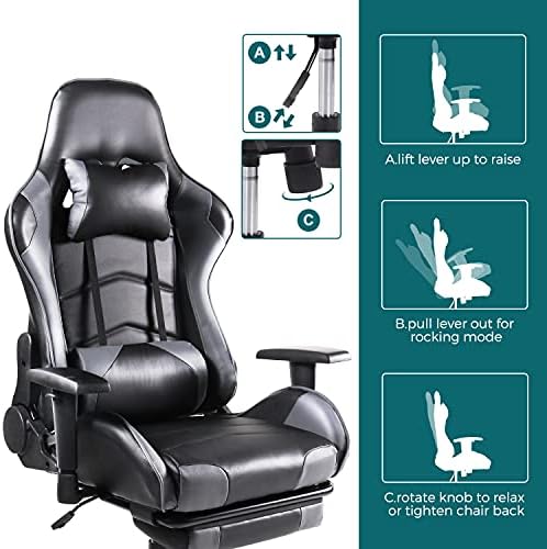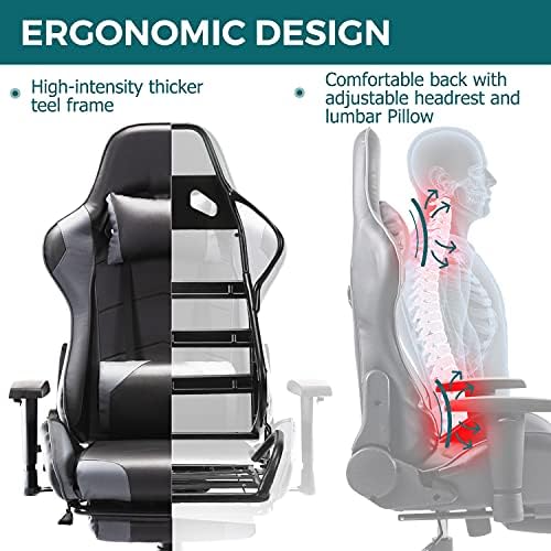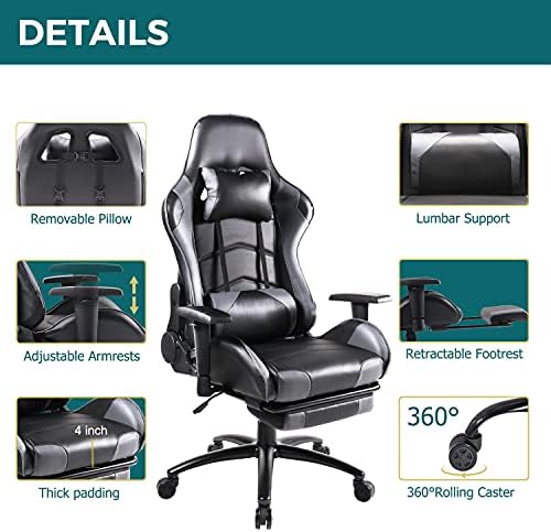 【Video Game Chair with Footrest】The footrest, located under the seat, can be freely retracted. When you play games or work, push the footrest in. When you want to rest and relax, pull the foot support out. The chair easily swivels 360 degrees to get the maximum use of your workspace without strain but also keeps you steady when you need to work. Our premium PU leather is more durable due to its scratch-proof, fading-resistant, and easy-to-clean nature.