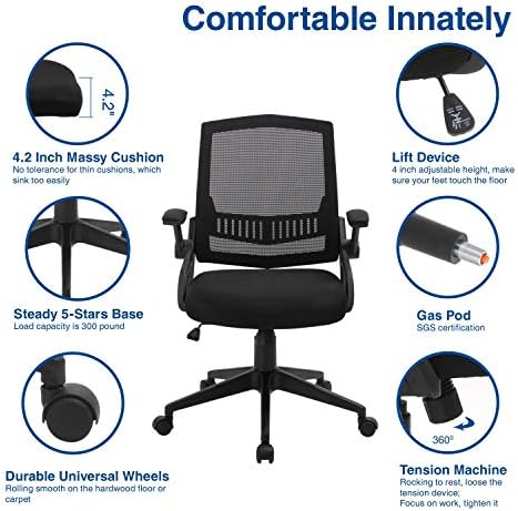 Office Chairs, ZLHECTO Mid-Back Computer Desk Chairs with Ergonomic Back, Swivel Task Chairs with Thick Cushion, Upgraded Huge Cushion Foam – Hold up to 300lbs, 5-Years Warranty