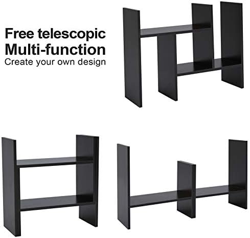 Office Desktop Bookshelf Adjustable Wood Display Shelf Desktop Organizer Office Storage Rack Countertop Bookcase Office Supplies Desk Organizer Accessories(H w Stand, Espresso Color Instead of Black)