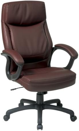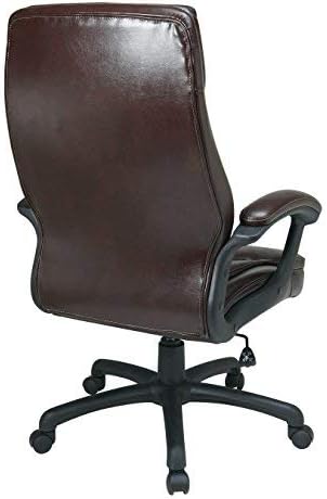 Office Star High Back Thick Padded Contour Seat and Back Eco Leather Executive Chair with Locking Tilt Control with 2-tone Stitching, Mocha