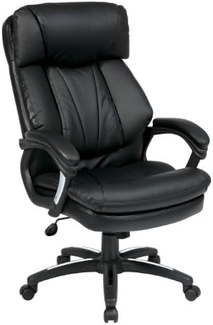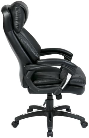 Office Star Oversized Faux Leather Executive Chair with Padded Loop Arms, Black
