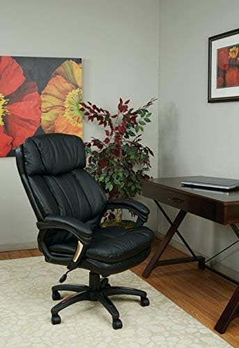 Price: (as of – Details) Oversized Faux leather executive chair with padded Loop arms. Faux leather seat and back with built-in lumber support. One Touch pneumatic seat Height adjustment. Locking tilt control with adjustable tilt tension. Padded nylon arms with polished aluminum accents. Heavy duty Nylon Base with polished aluminum accents and dual wheel carpet