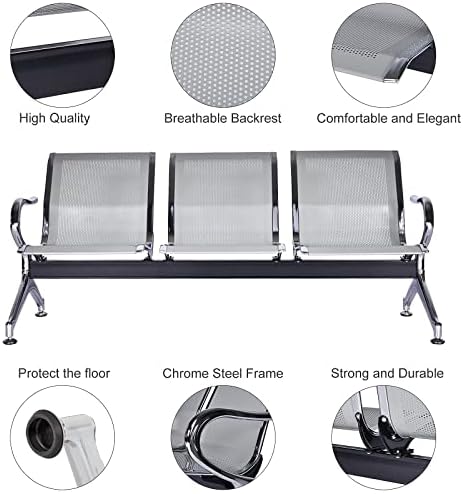 【Stable & Durable】Constructed with Stainless Steel(1.5mm thickness perforated cold-rolled steel, powder coated, 1.2 mm thickness cold-rolled steel, chromed), the waiting chair offers a comfortable seating experience. Prevent to rust and prolong service life. Maximum weight capacity for each chair is 330 lbs.