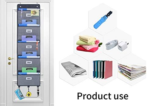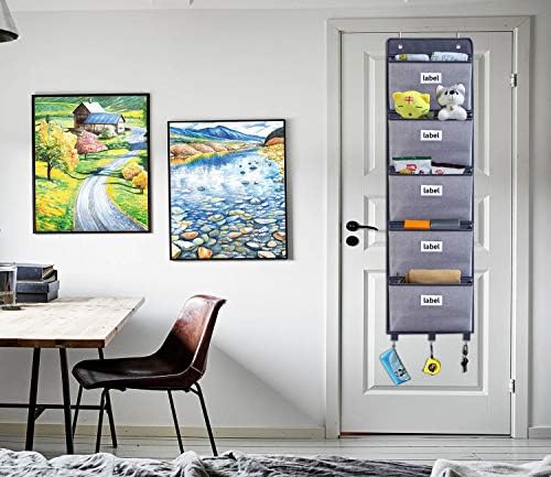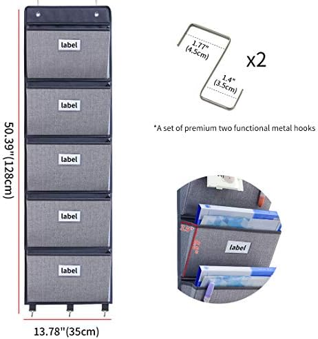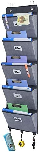 Onlyeasy Over Door Hanging File Organizer – Office Supplies Storage Holder Wall Mount Pocket Chart for Magazine Notebooks Planners File Folders, 13.8″ x 50.4″, 5 Pockets Grey, MXDZ05C