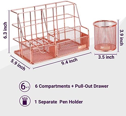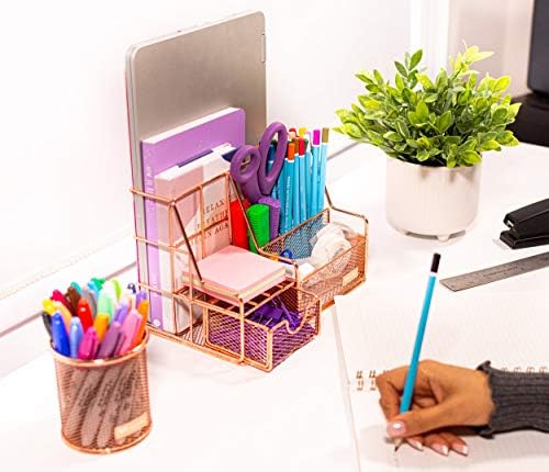 Orgowise Mesh Desk Organizers and Accessories Set. Rose Gold Desktop Organizer with Pen Holder and Paper File Organizer for Real Desk Organization. Cute Office Supplies Storage for Kids and Adults