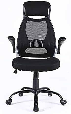 OWLN PHILI Executive Desk Chair Mesh Ergonomic Office High Back Chair with Flip Up Armrest, Adjustable Tall Task Chair with Lumbar Support (Black – Silver)