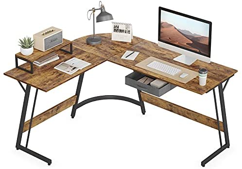 Tribesigns L Shaped Desk, Industrial L Desk with Storage Shelves, Rustic Corner Computer Office Desk for Home Office (Vintage)