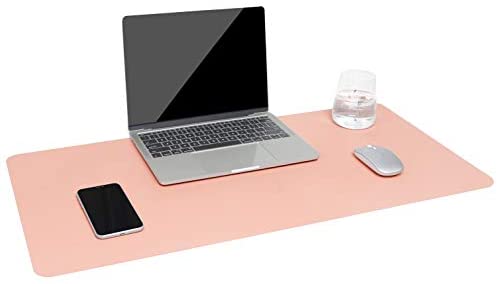 • Dual-Sided Multifunctional Desk Pad, Waterproof Desk Blotter Protector, Leather Large Desk Wrting Mat Mouse Pad(31.5″ x 15.7″, Pink)